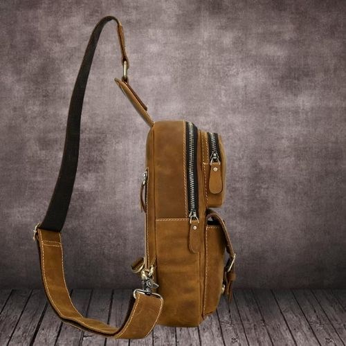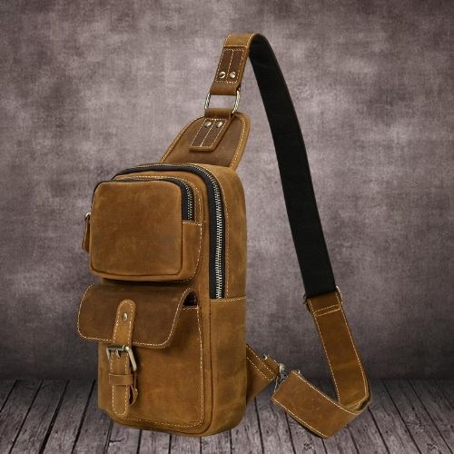 Ce sac est conçu à partir de cuir véritable, vous assurant une qualité et une résistance incomparables. La teinte unique du cuir lui donne un caractère distinctif, idéal pour ceux qui apprécient le charme d’un cuir vieilli au fil du temps. Il est également équipé d’une sangle ajustable, permettant une adaptation parfaite à votre style de port, que ce soit en bandoulière ou sur l'épaule.